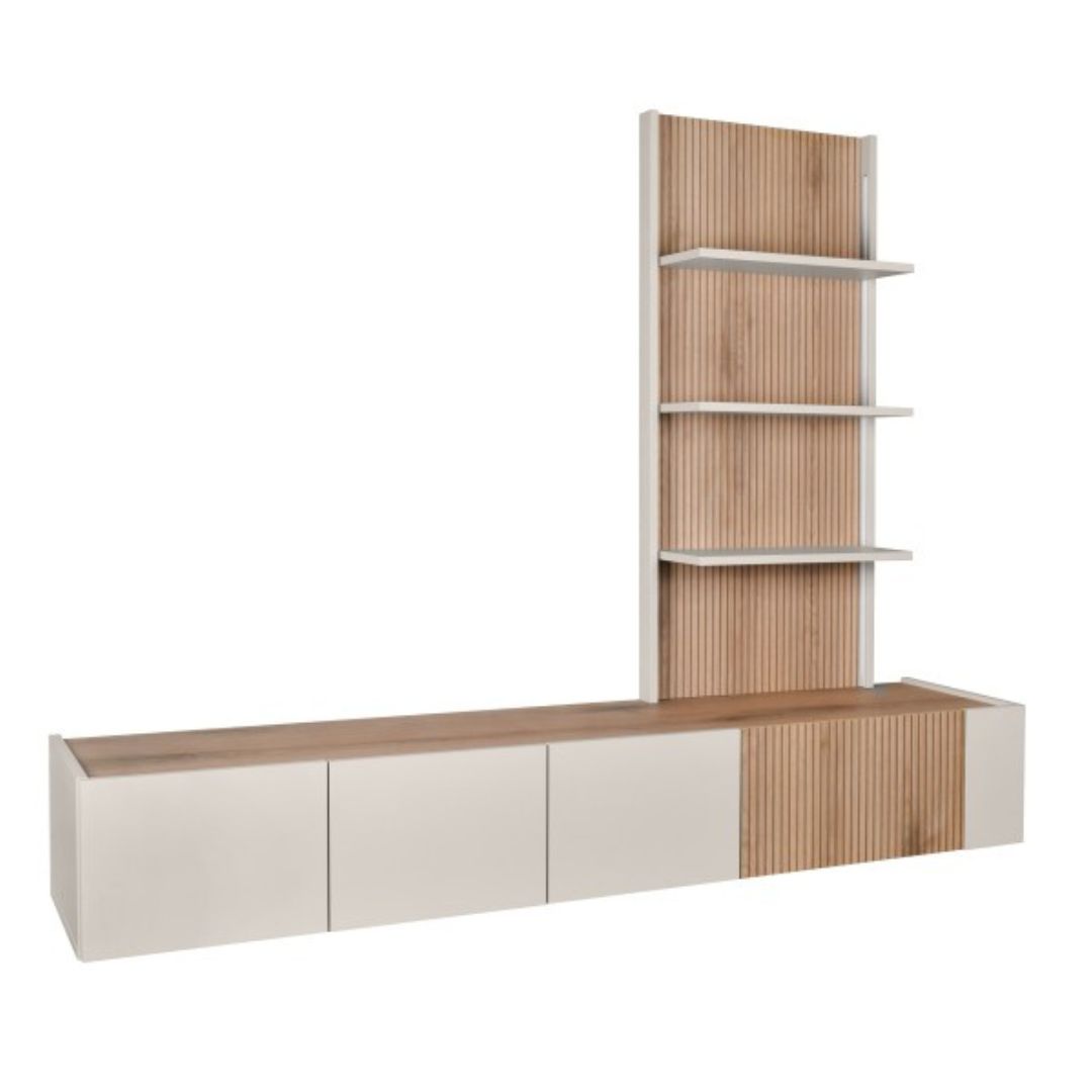 - Комплетен визуелен баланс меѓу ТВ комода и полица