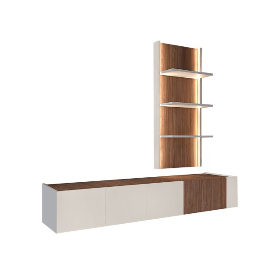 Дневна соба Смарт – ТВ комода и полица со лед осветлување во совршен баланс