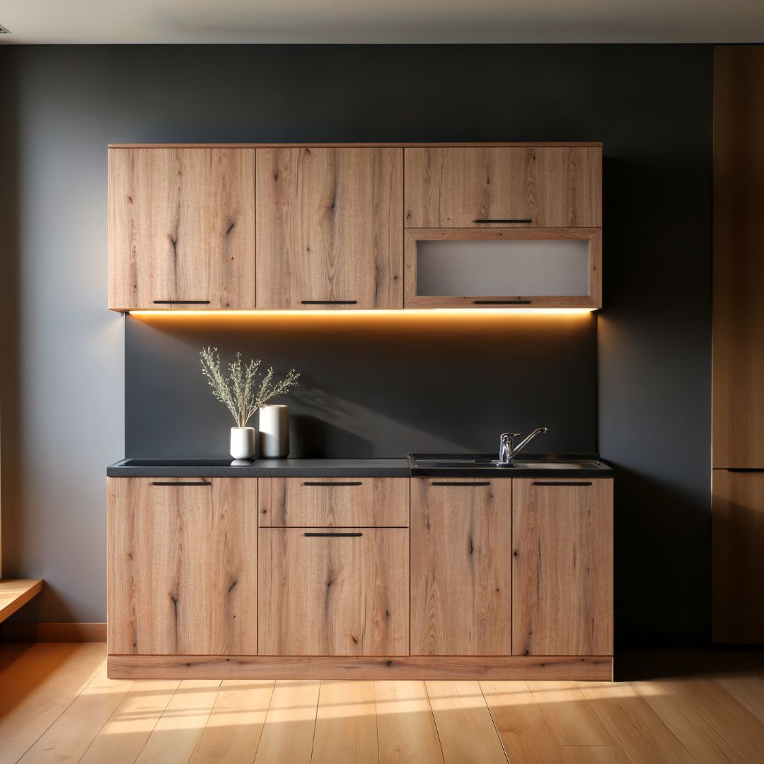 Кујна Комфорт 200 е одличен избор за оние кои имаат малку повеќе простор и сакаат комбинација од модерен дизајн и функционалност. Оваа кујна овозможува ефикасна организација и пријатен амбиент за подготовка и складирање на храна.