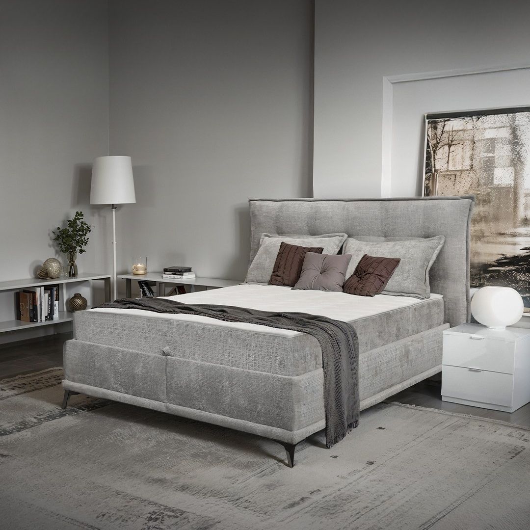 Вградената кутија за постелнина овозможува организирано складирање без зафаќање дополнителен простор. Ова го прави совршен избор за мали станови, млади семејства или секој што сака повеќе функционалност во помал простор. Креветот Бали е идеална инвестиција за оние кои сакаат да го подобрат својот простор со квалитетен и функционален мебел, кој ќе понуди долгогодишна удобност и стил. Се изработува во две димензии 196хх218х134 (200х160) и 216х218х134 (20х180) и два дезени(беж и сиво)