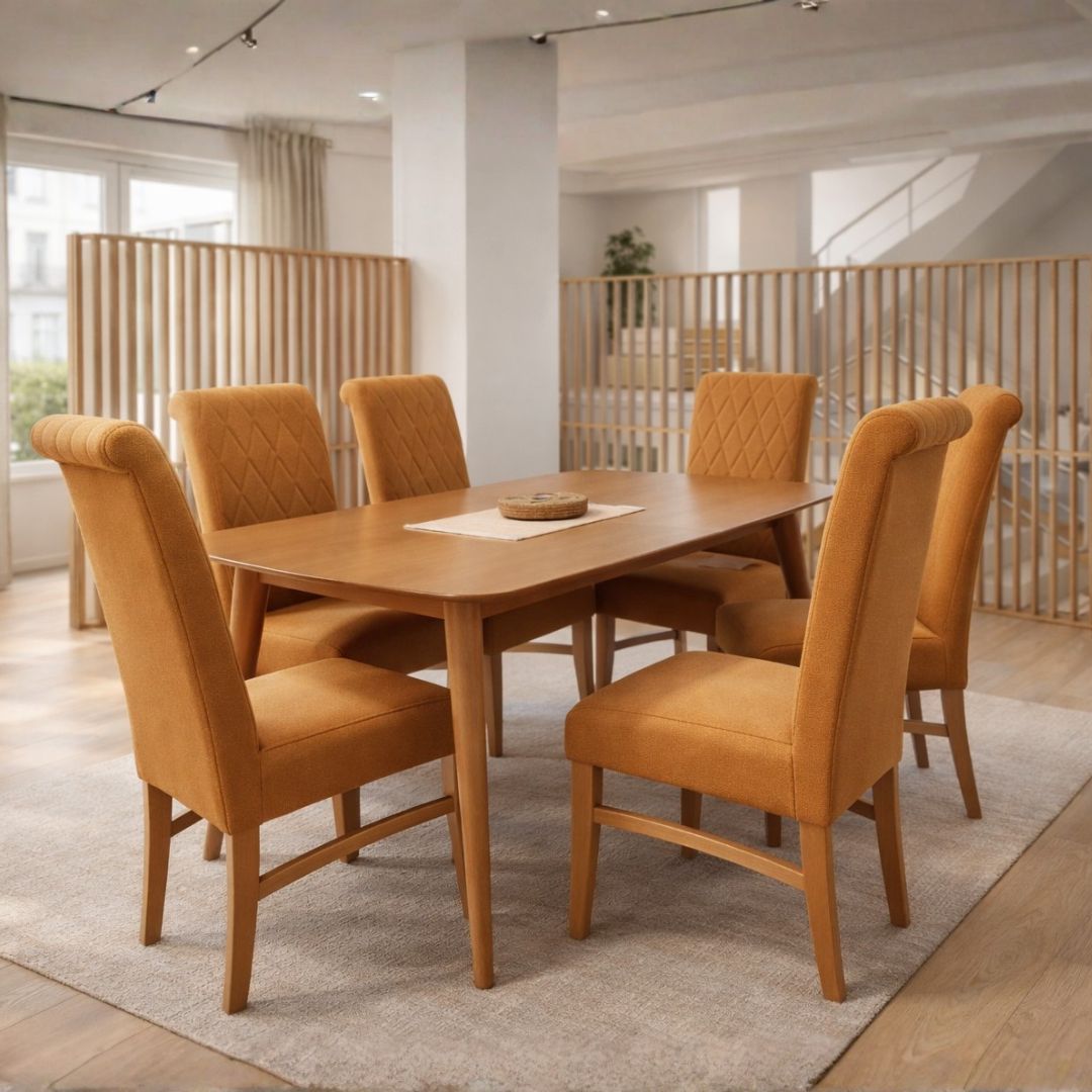 Практичен и модерен трпезариски сет кој се состои од трпезариска маса Алфа и 6 столици Јана Б. Идеален е за семејни оброци и дружења, обезбедувајќи удобност и функционалност во трпезаријата.