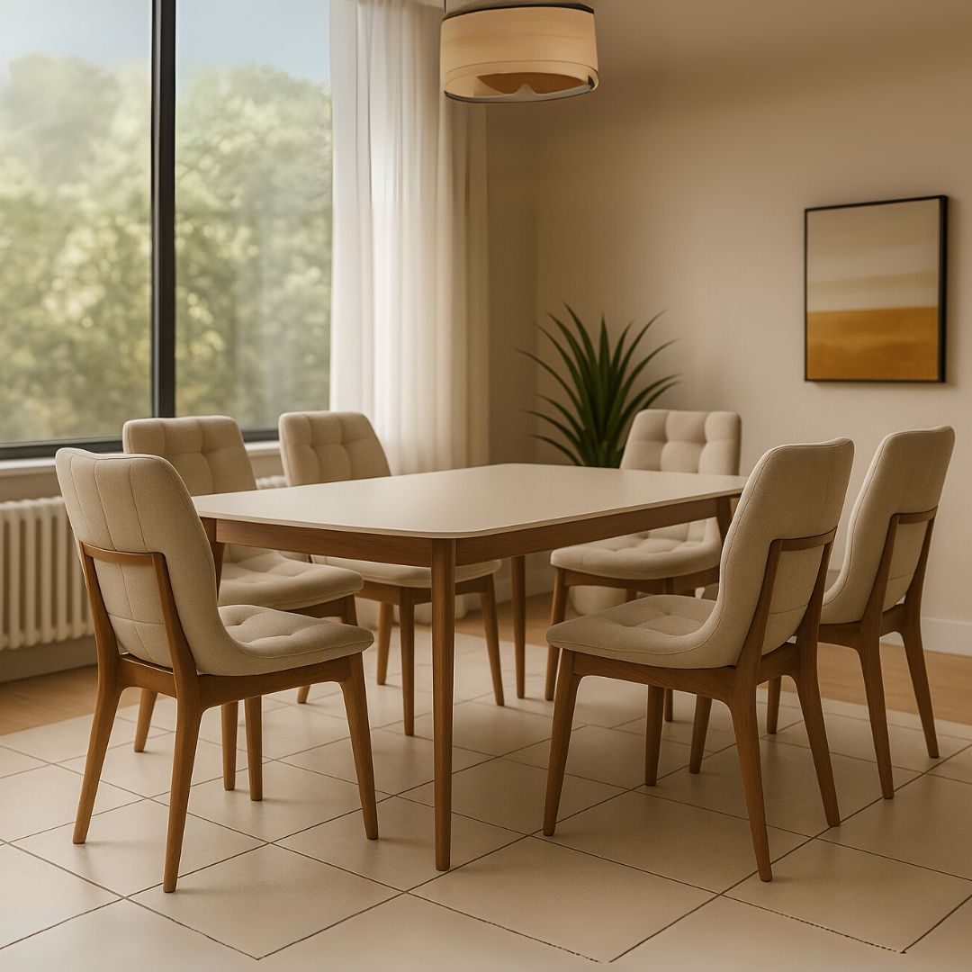 Трпезариска маса Венера + стол Венера – елегантен и практичен избор за модерна трпезарија. Софистициран дизајн, квалитет и удобност за секојдневие користење и за свечени моменти.