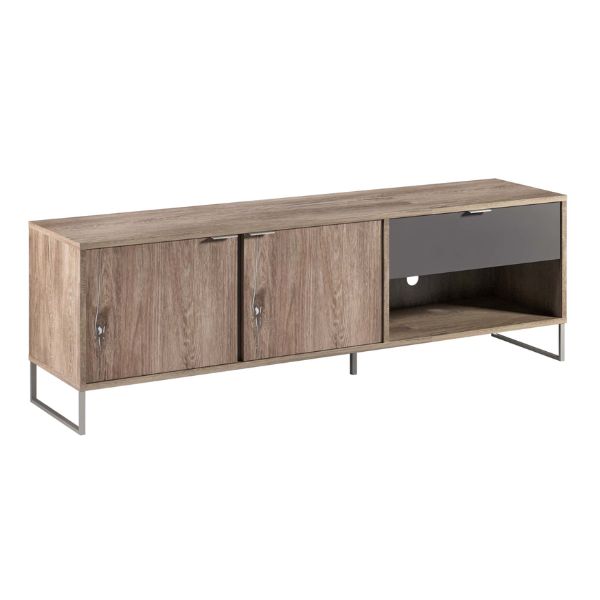 Елегантна ТВ комода со простор за медија-уреди, фиока со целосно извлекување и врати со успорувачи. Метални ногари и рачки за дополнителна стабилност. ТВ комодата Denver е дизајнирана да ја подобри функционалноста и изгледот на дневната соба. Со димензии 172,8 × 40 × 54 cm, нуди одличен простор за поставување телевизор и медиски уреди.